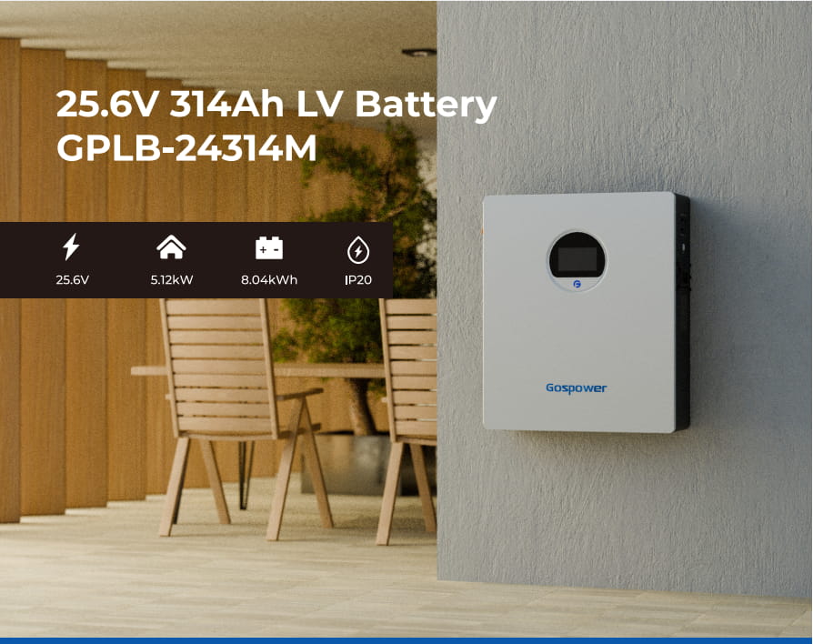 Gospower GPLB-24314M wall mounted lithium battery is engineered with cutting-edge technology, these batteries provide a reliable and efficient energy storage solution for your solar power system. This wall mounted design Li-ion LiFePO4 battery with a total usable energy of 8.04kWh is perfect for small to medium residential or office installations with a proven Lithium Iron Phosphate (LifePO4) solution that offers a low internal resistance with excellent continuous high current discharge performance and great lifecycle of more than 6000 at 80% DOD. The battery has a wide operating temperature range without many restrictions, making it more convenient for daily life and work. The 8.04kwh wall-mounted solar battery supports a parallel connection to expand capacity and power.